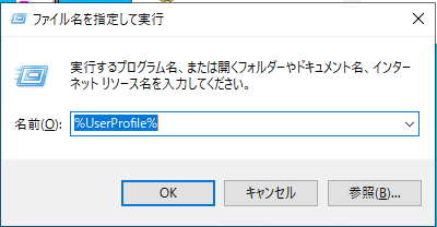 Win + Rファイル名を指定して実行から%UserProfile%を実行する