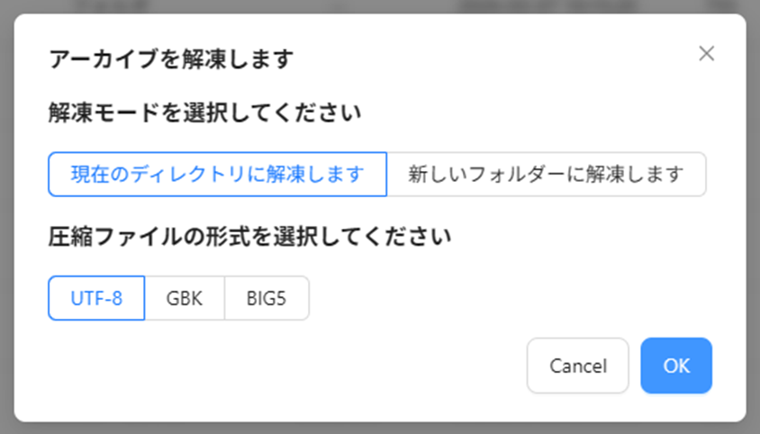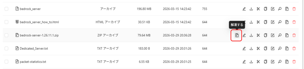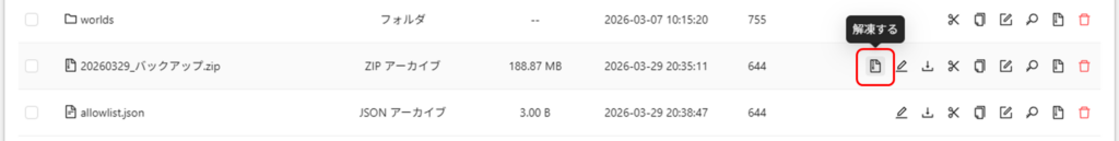 アップロードしたファイルの解凍するを選択。