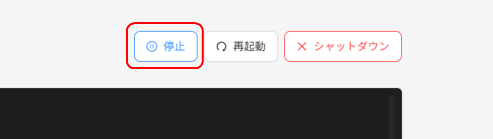 コンソール画面右上の停止を実行し、サーバーを停止する