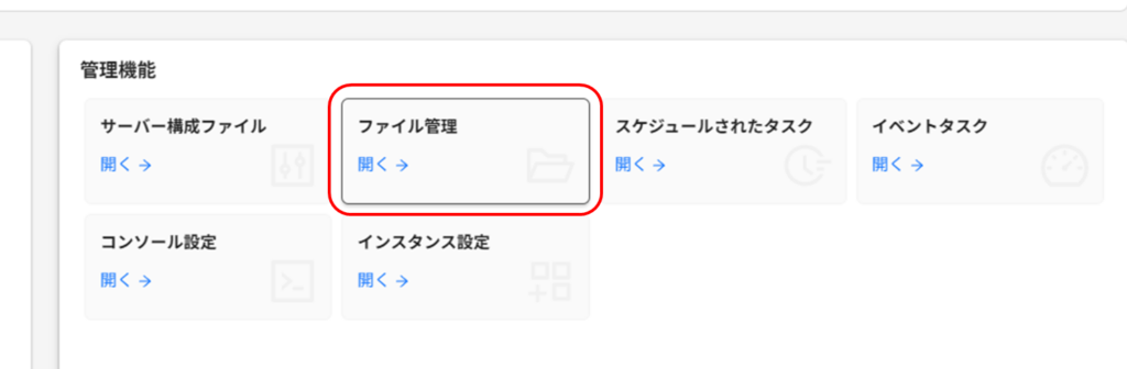 コンソール下部のファイル管理を選択