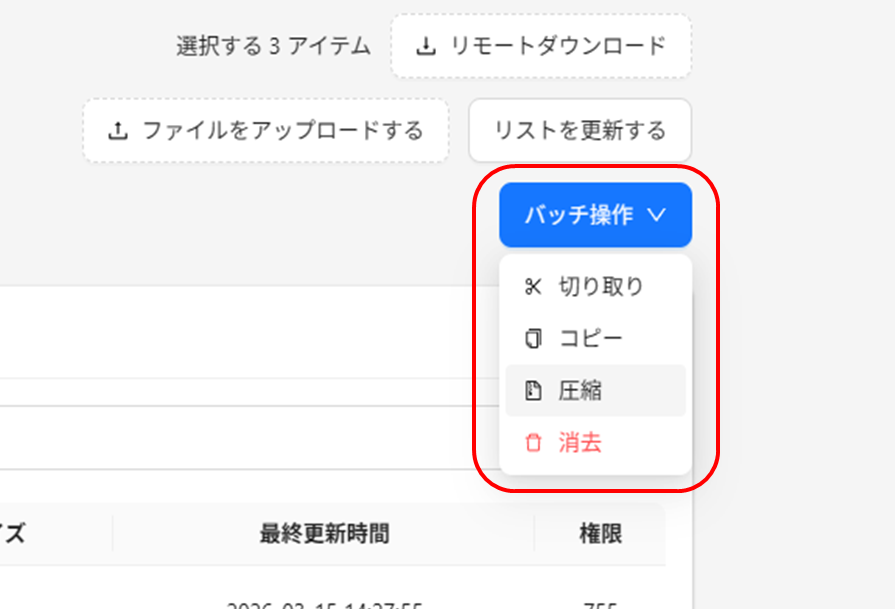 画面右上のバッチ操作から圧縮を選択