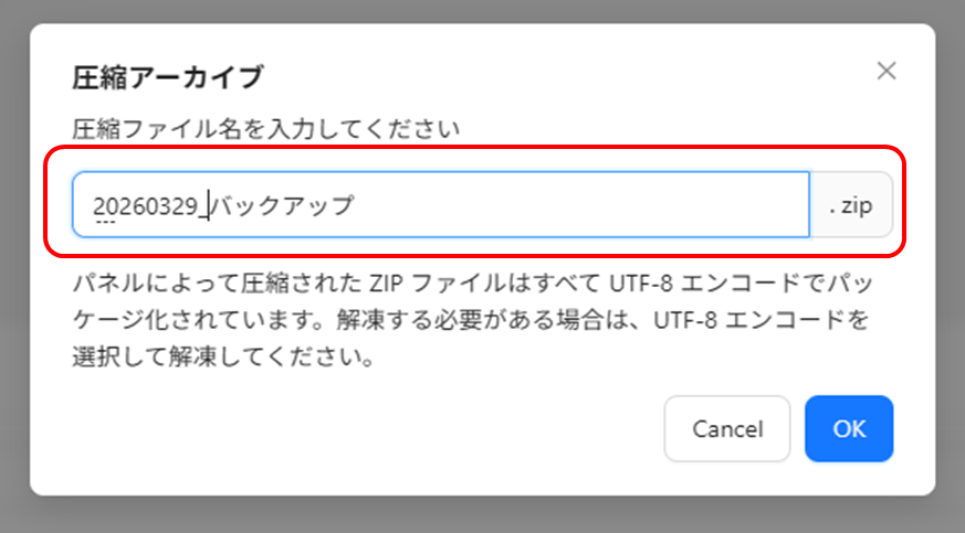 適当な名前を付けて圧縮ファイルを作成する