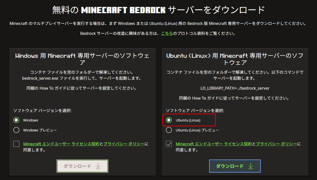 Bedrock 版 Minecraft のサーバーをダウンロード