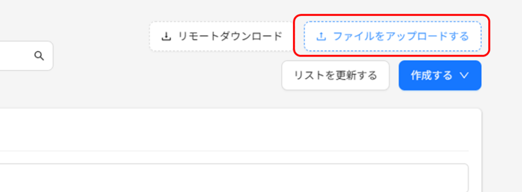 ダウンロードしたファイルをアップロードする。